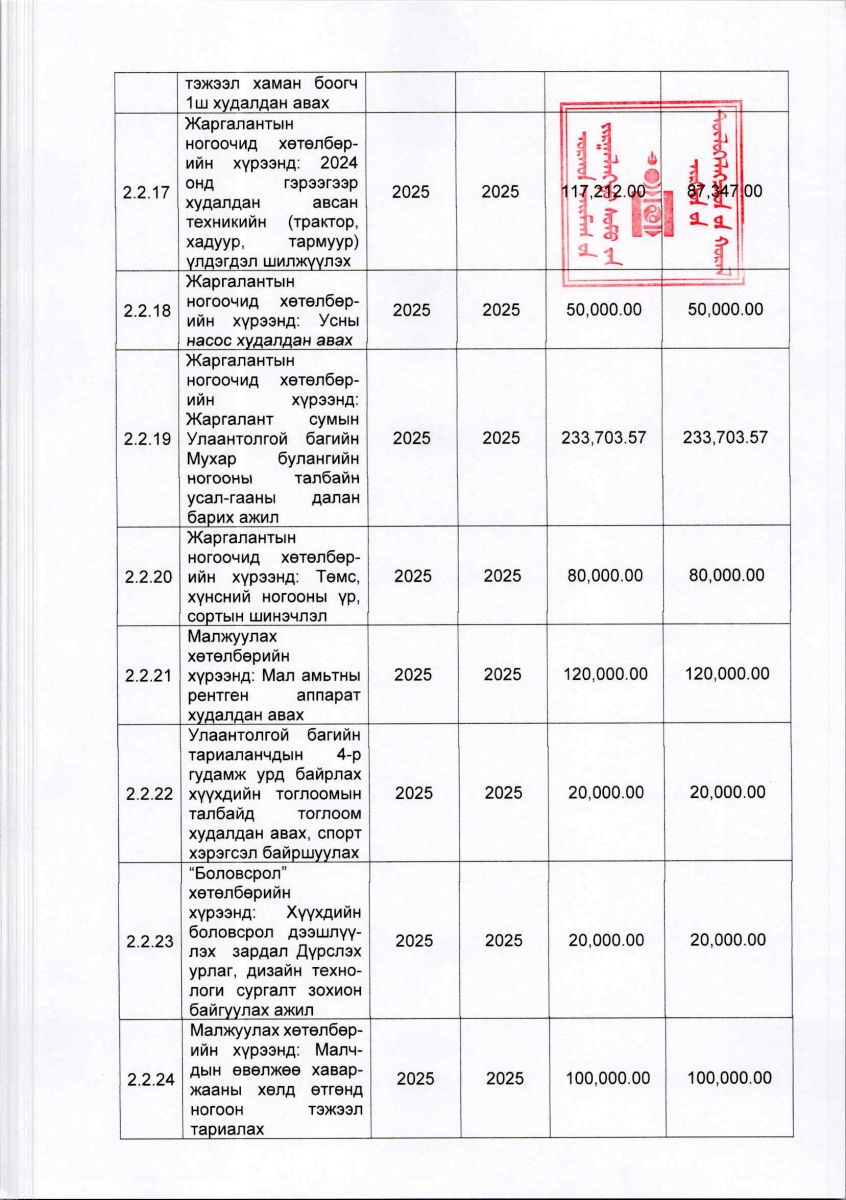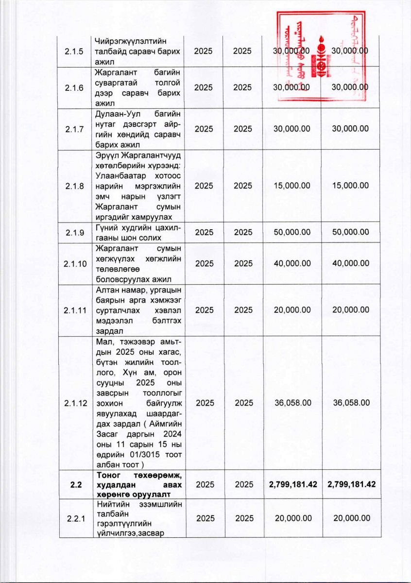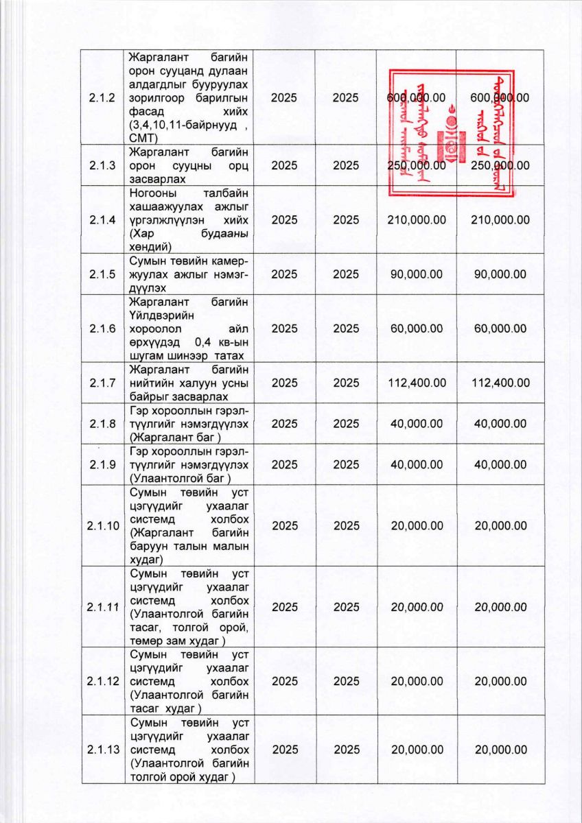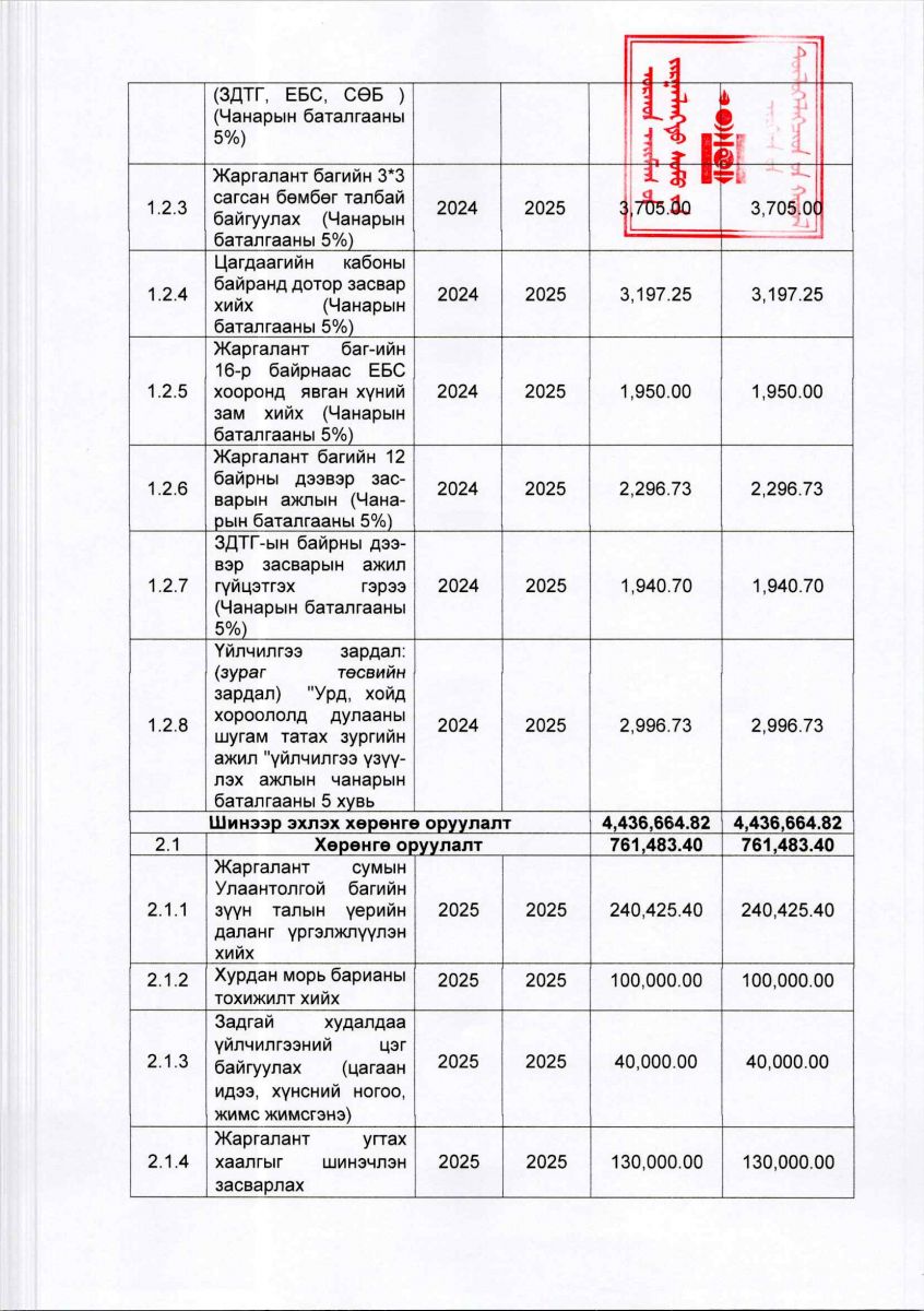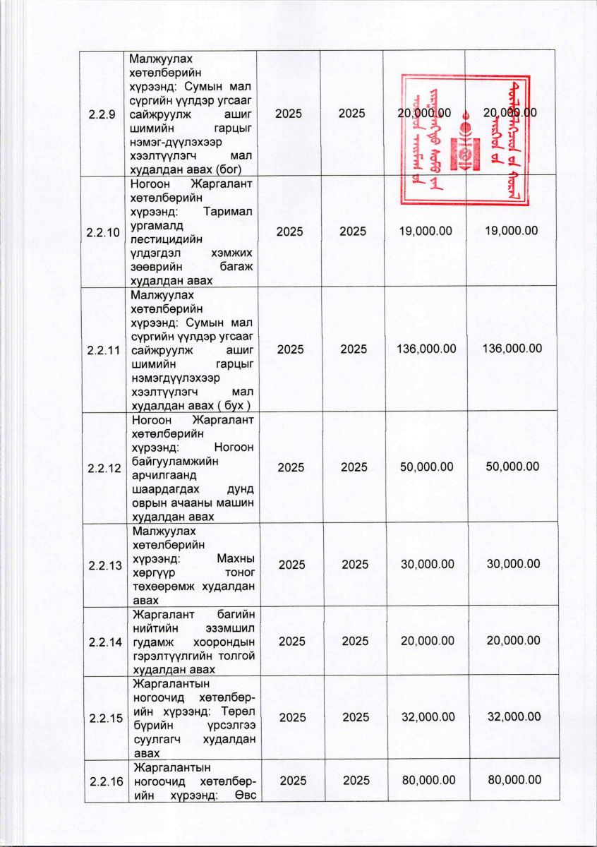 Жаргалант сумын 2025 оны тодотгосон төсөв
