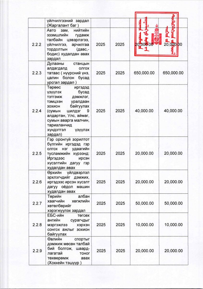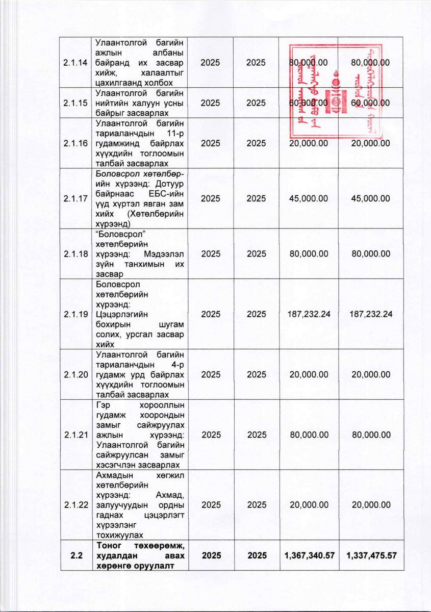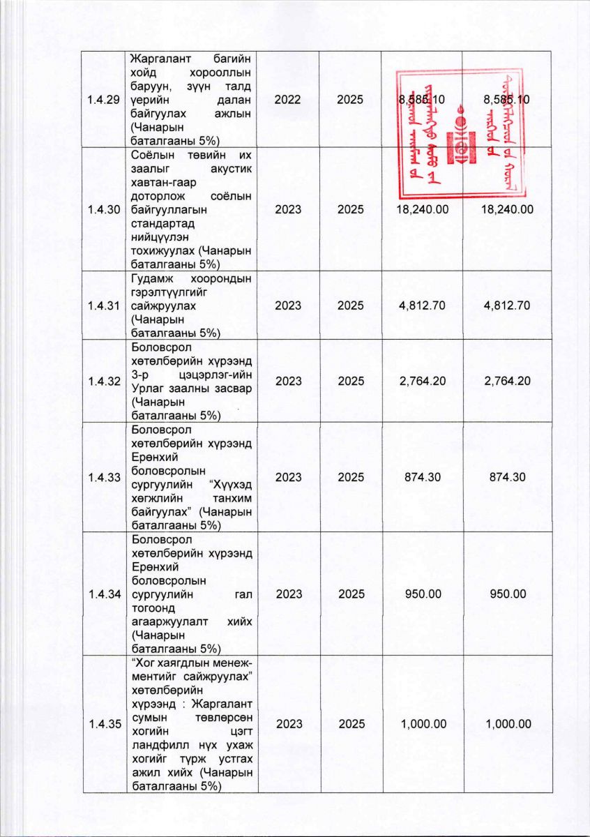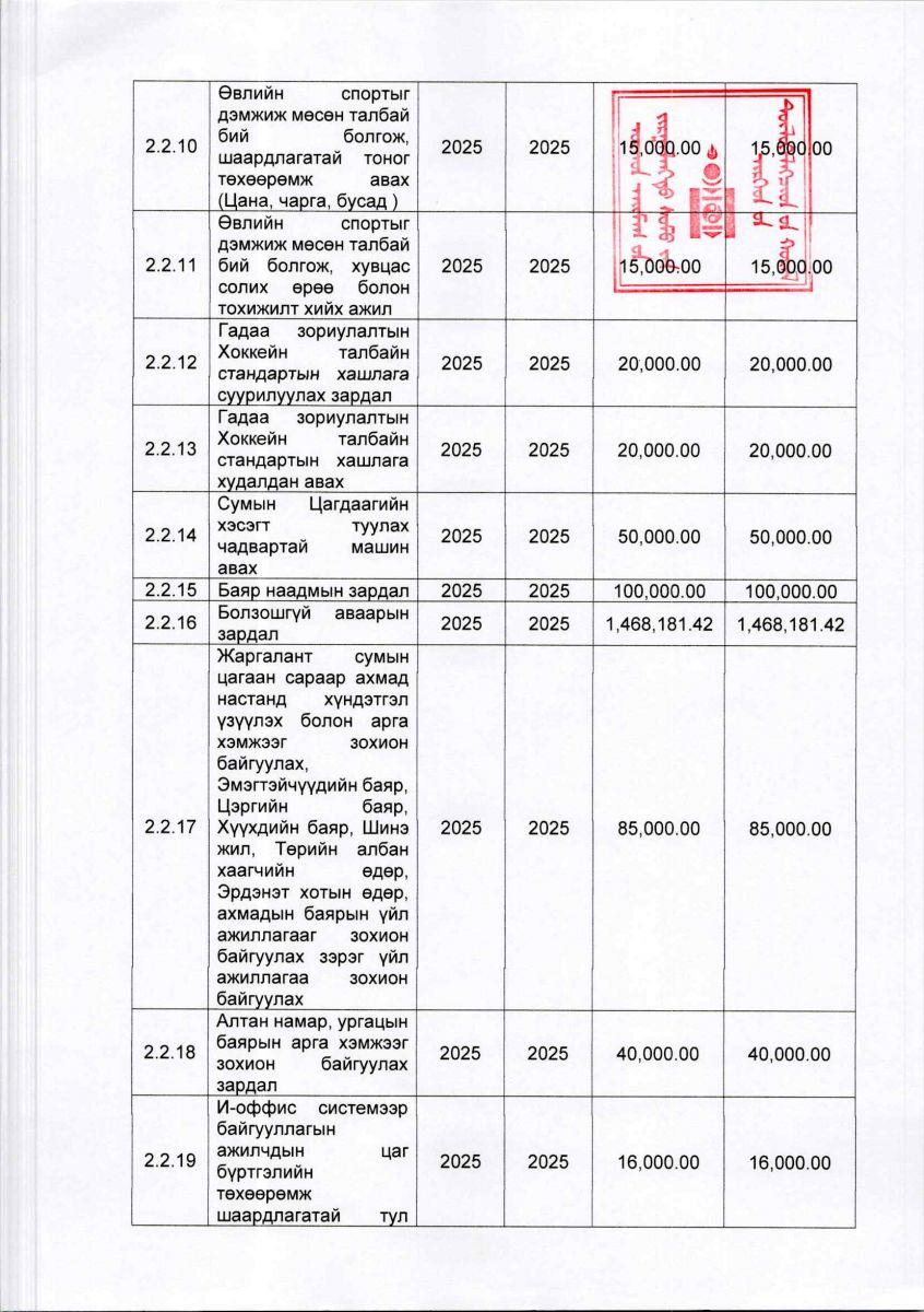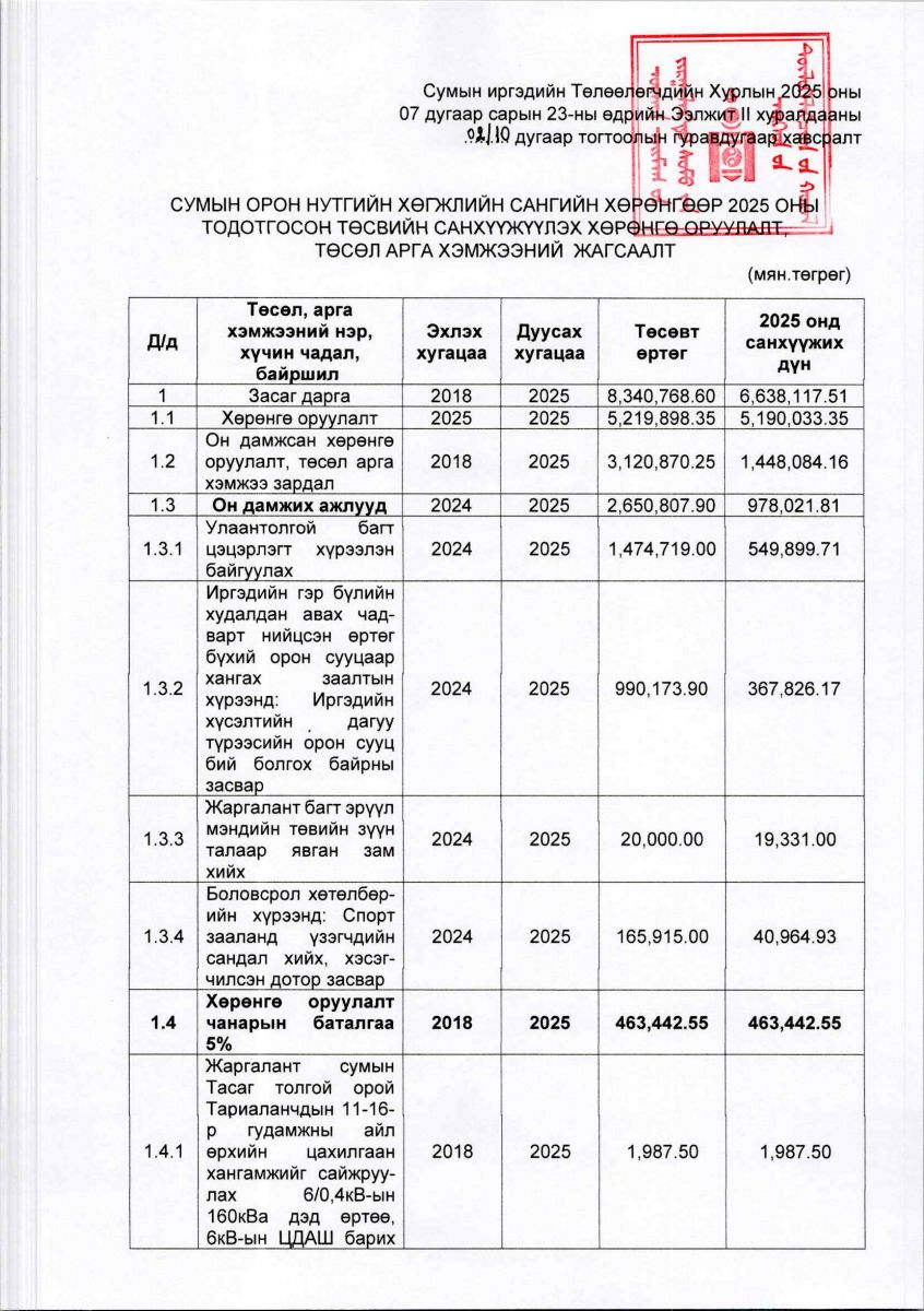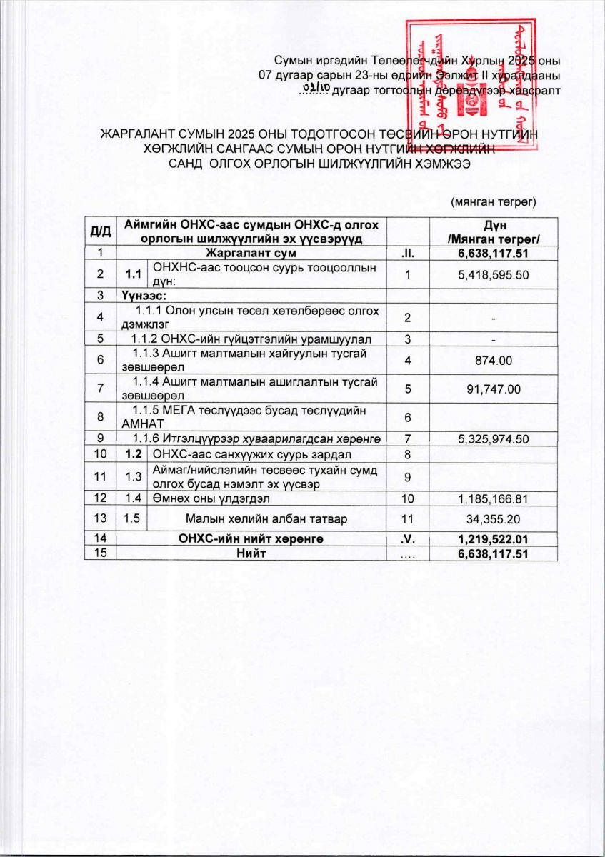 Жаргалант сумын 2025 оны тодотгосон төсөв
