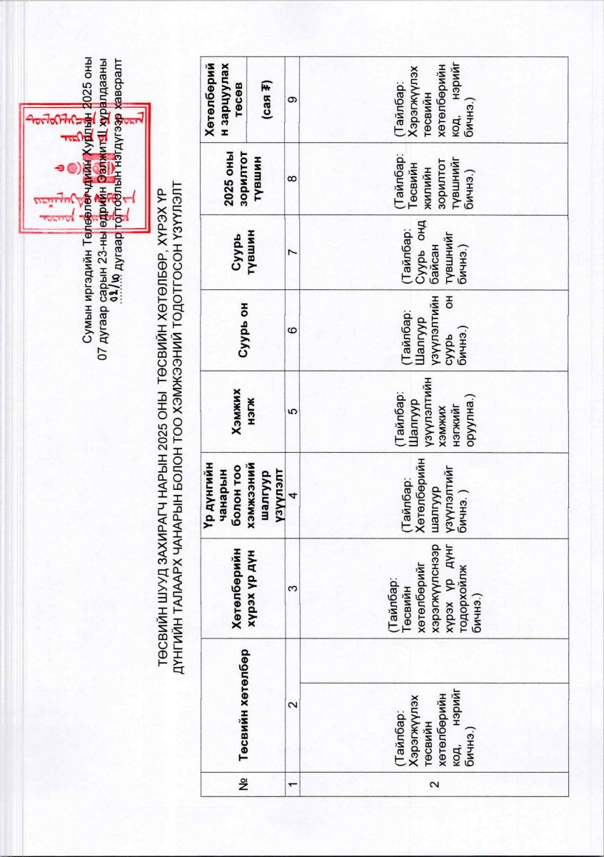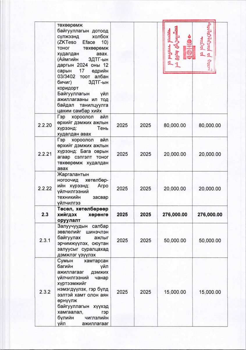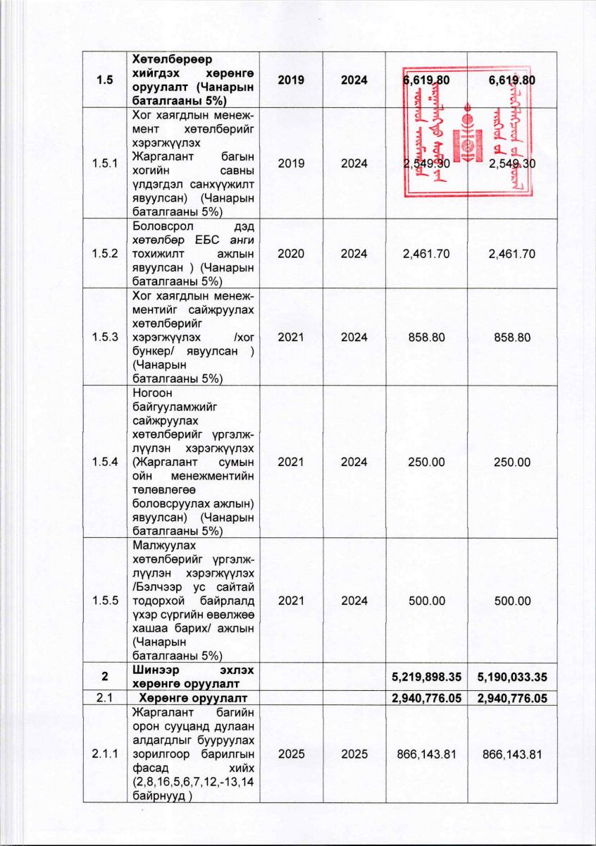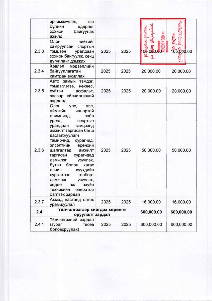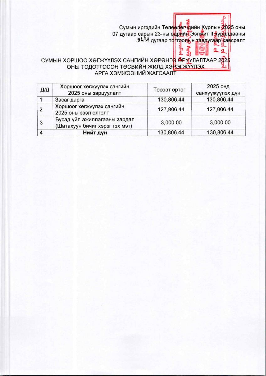 Жаргалант сумын 2025 оны тодотгосон төсөв
