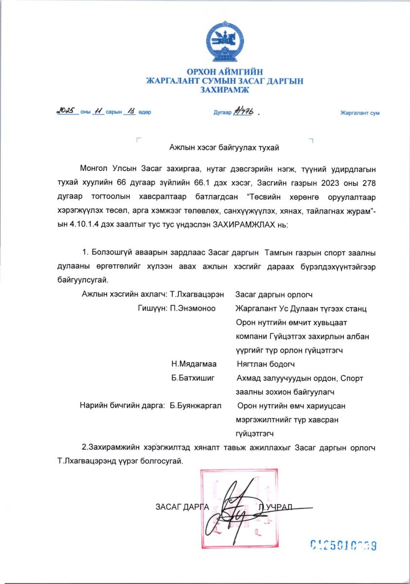 Орхон аймаг Жаргалант сумын ЗДТГ