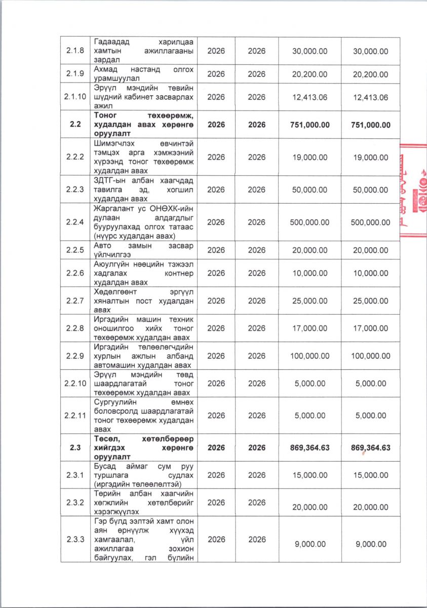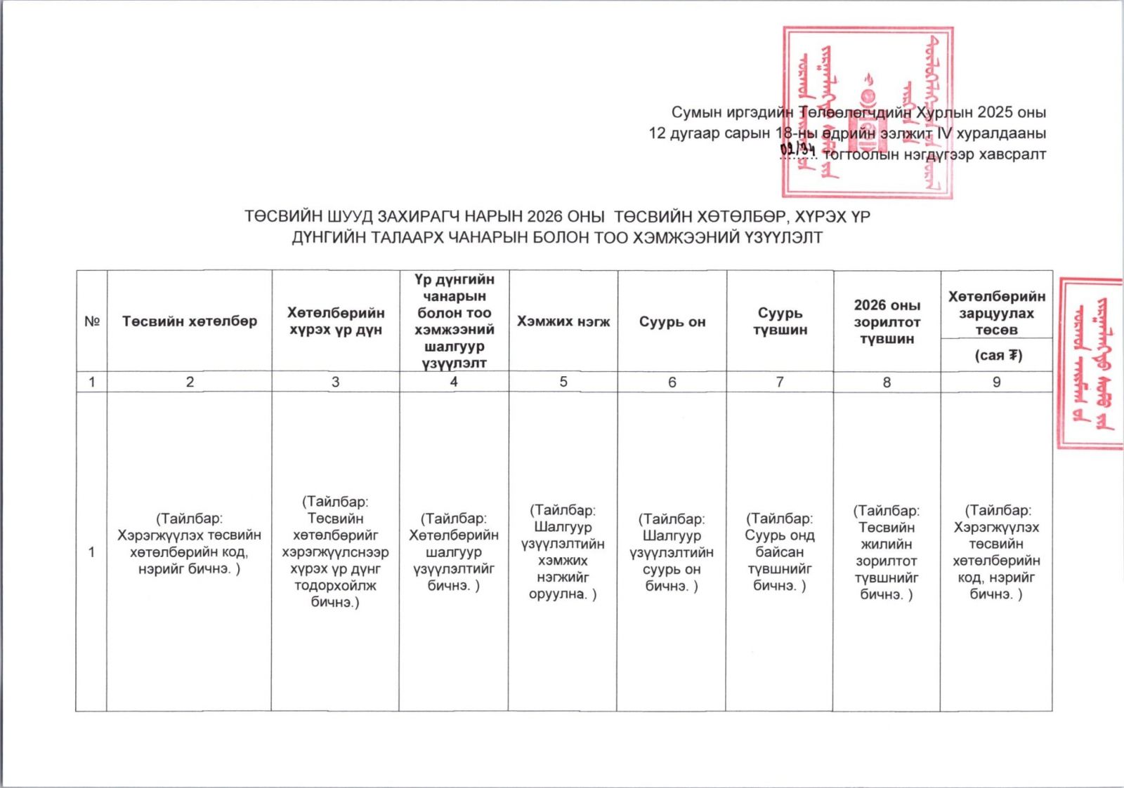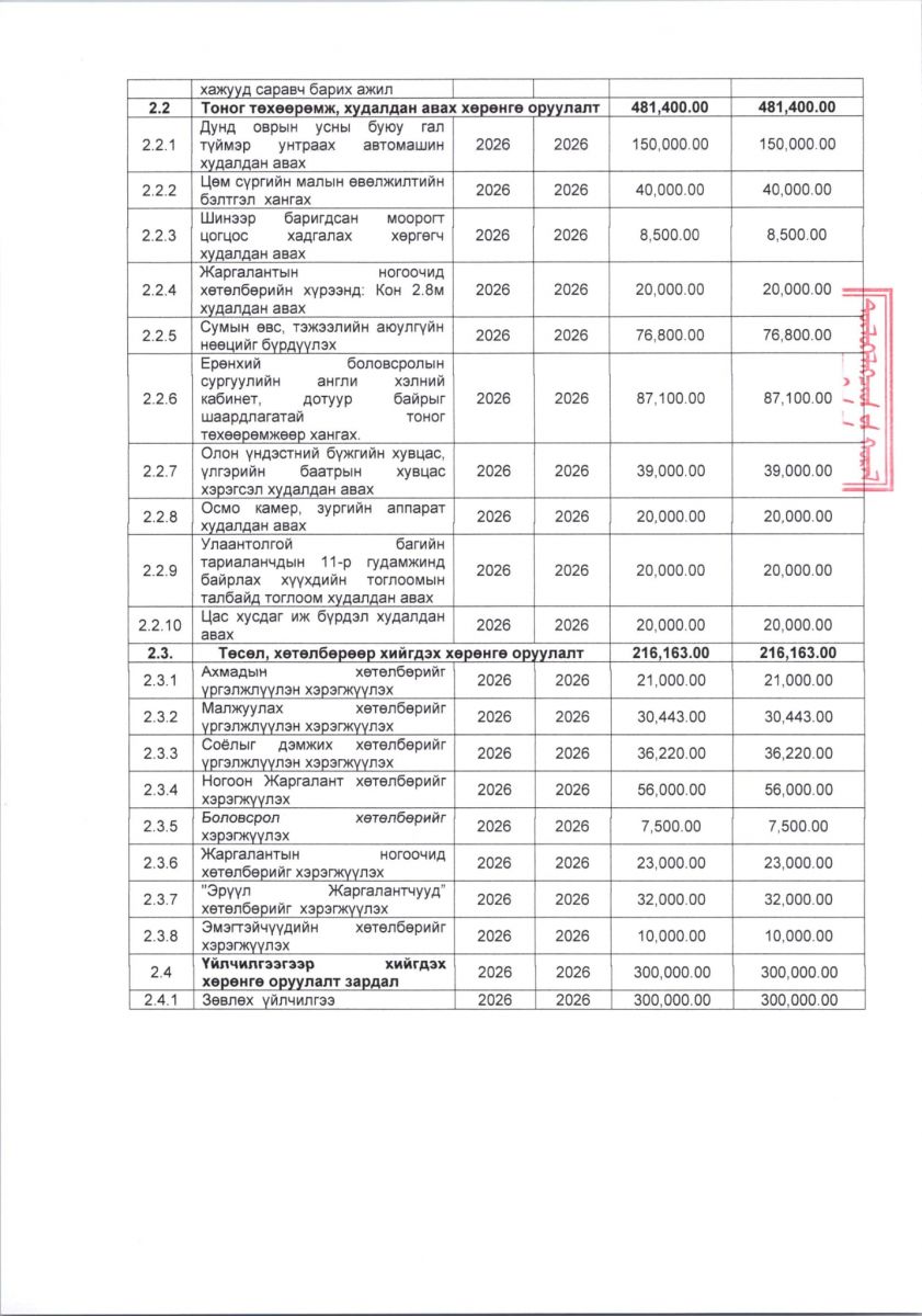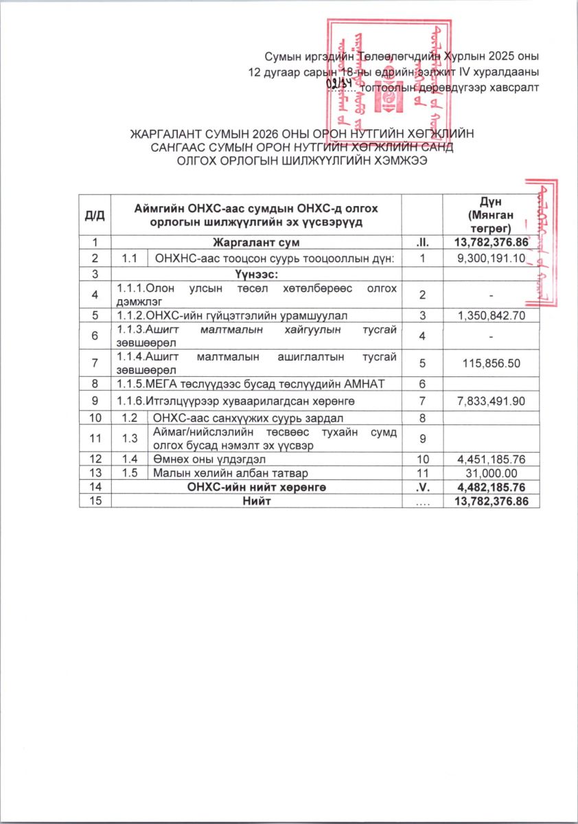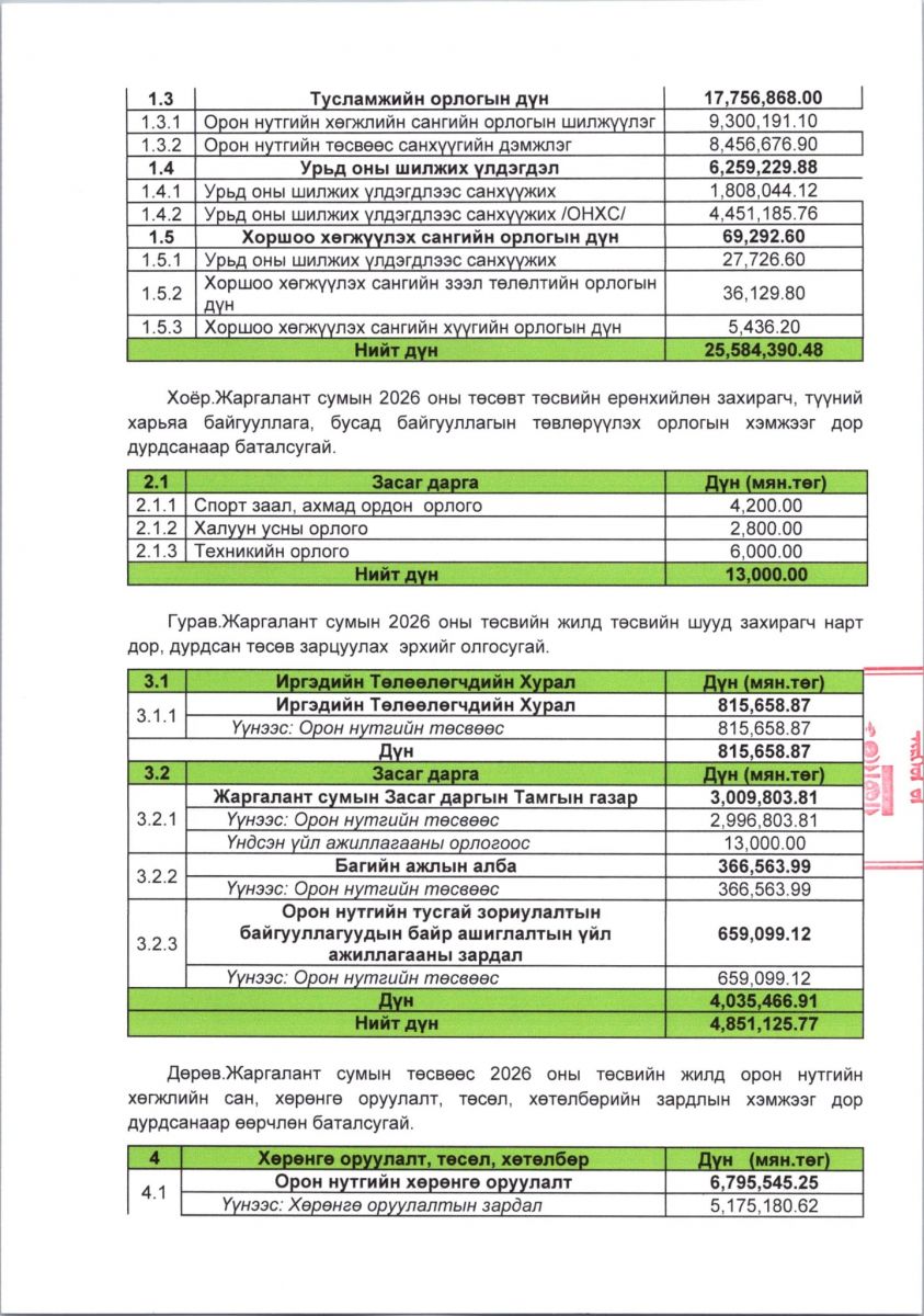 Орхон аймгийн Жаргалант сумын 2026 оны төсөв