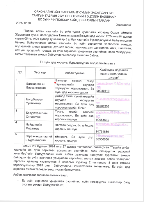 Манай хаяг: Орхон аймаг Жаргалант сум Жаргалант баг, Нутгийн Удирдлагын ордон