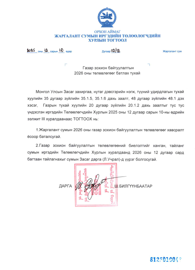 Манай хаяг: Орхон аймаг Жаргалант сум Жаргалант баг, Нутгийн Удирдлагын ордон